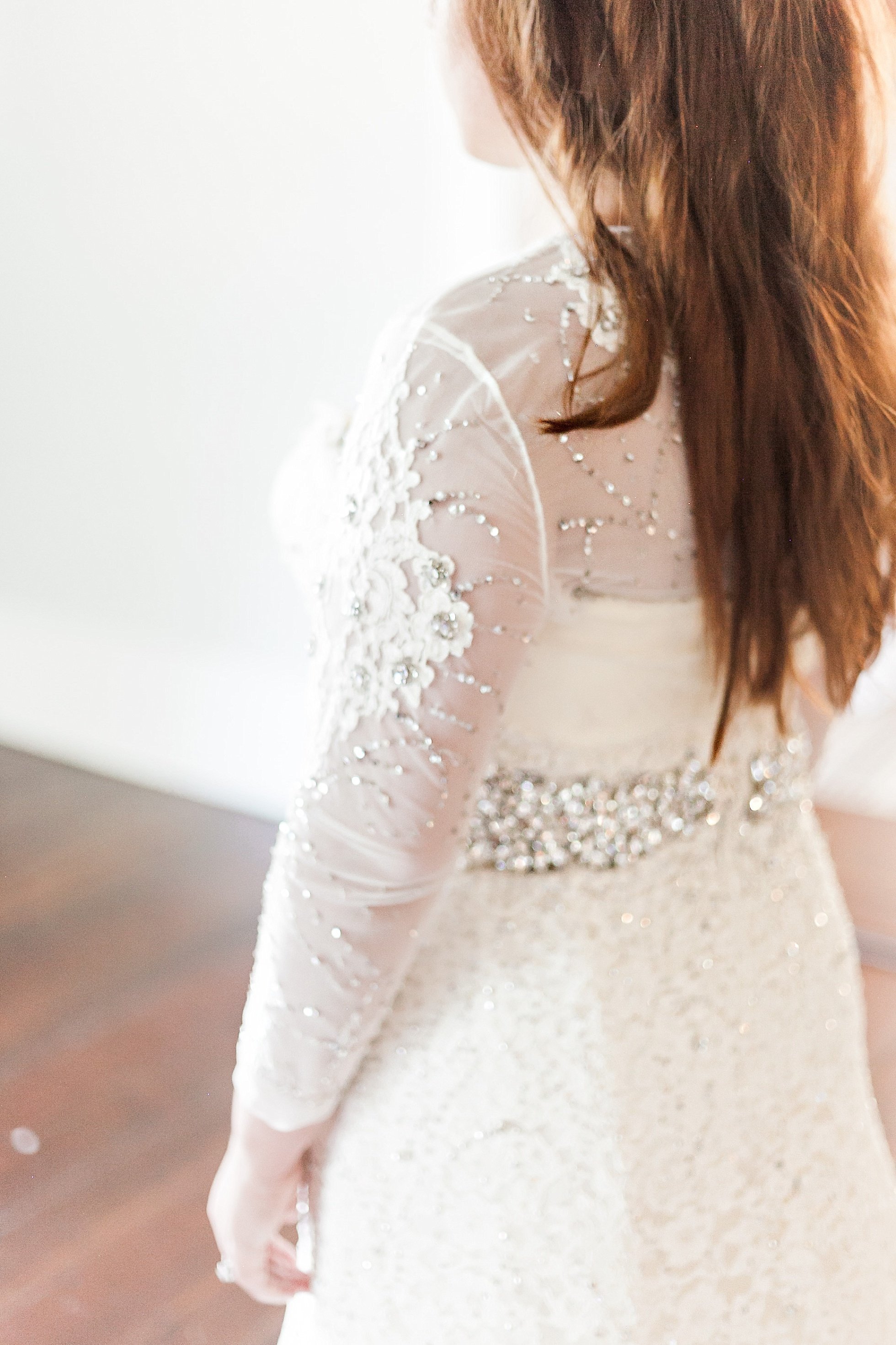 Carolina Herrera The Art Of Dressing Farah Novias - Below, the twilight wedding dress details — the back of the bridal gown feature a row of 152 buttons and sheer panel framed with delicate embroidery.
